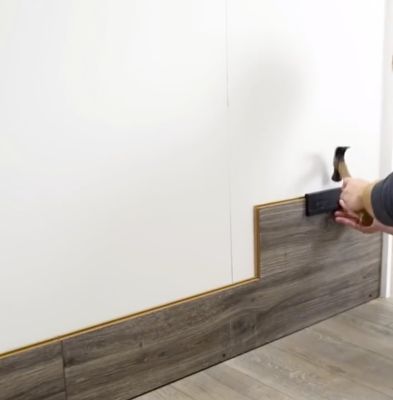 - My Husband Created A Laminate Wall Using Bull Barn Oak. It ... . Installing Laminate, Hardwood And Lvt On The Wall.